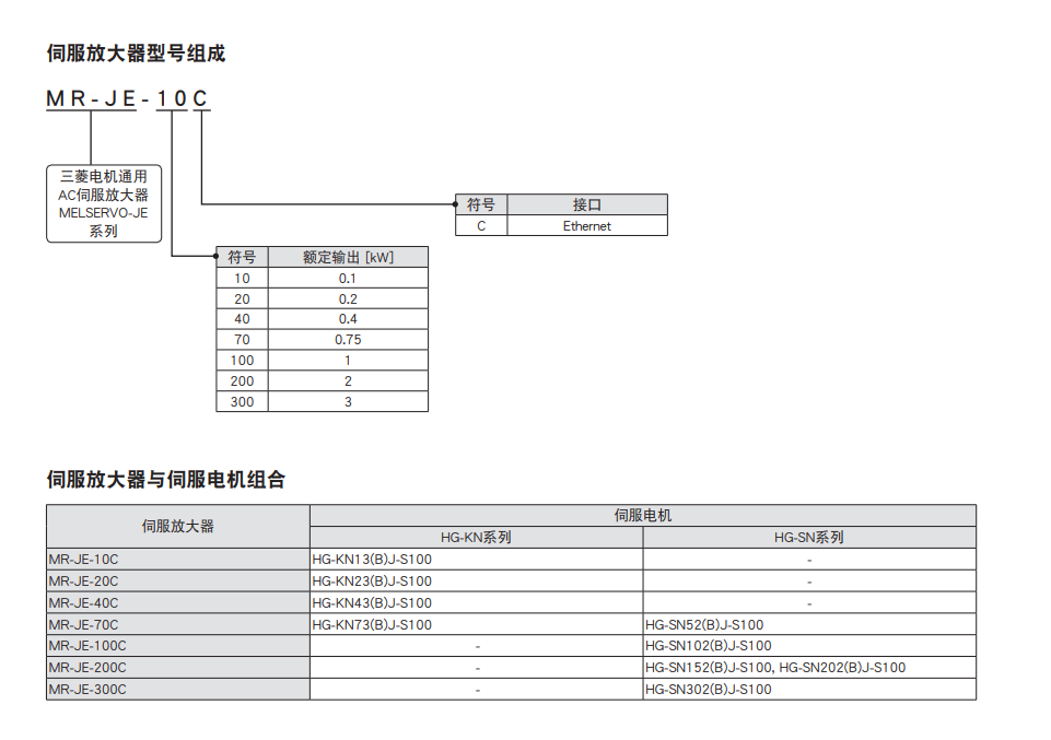 | MR-JE系列 | 0.1KW | HG-KN13J-S100 | MR-JE-10C | CAT6A-RJ45-_M | MR-J3ENCBL_M-A1-L | MR-PWS1CBL_M-A1-L | |