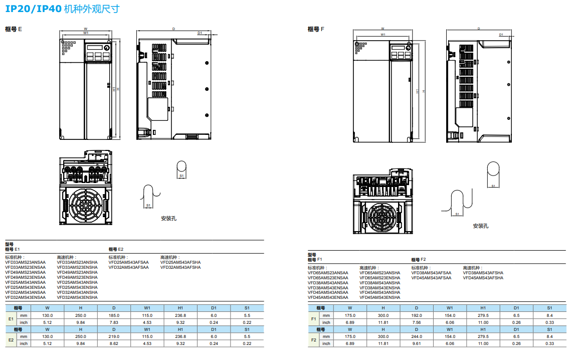 | VFD2A8MS23ENSAA | √ | VFD45AMS43AFSAA | √ | |||||||||||