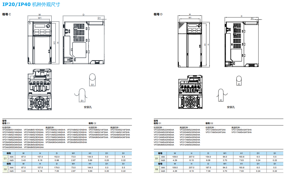 | VFD9ADMS43MFSAA | √ | VFD5A5MS43ANSHA | 3 | 2.2 | 5.5 | C | |||||||