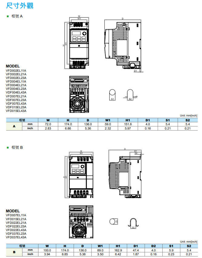 - 內(nèi)含EMI Filter (230V 1 phase and 460V 3 phase機(jī)種)