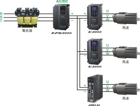 臺達電子利用多年來開發(fā)交流馬達驅動器的專業(yè)技術,推出主動式前端-AFE2000系列。在工業(yè)自動化產品的應用中,將負載反饋的能量不需再轉換成熱能散發(fā)掉,相對的可以將反饋能量反饋到電網(wǎng),除增加產業(yè)自動化的效能與制程的大量化,并在生產制造的過程中,達到節(jié)能的目的,也符合臺達電子環(huán)保。