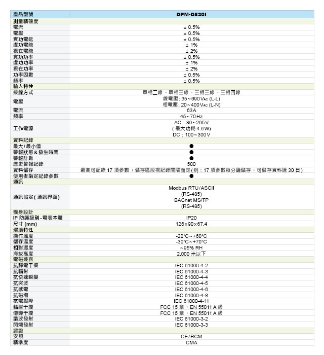 臺達導(dǎo)軌型多功能電表(內(nèi)含CT) DPM-D520I ,可負載63A 電流,適合用于設(shè)備機臺、空間有限和緊密安裝的空間。