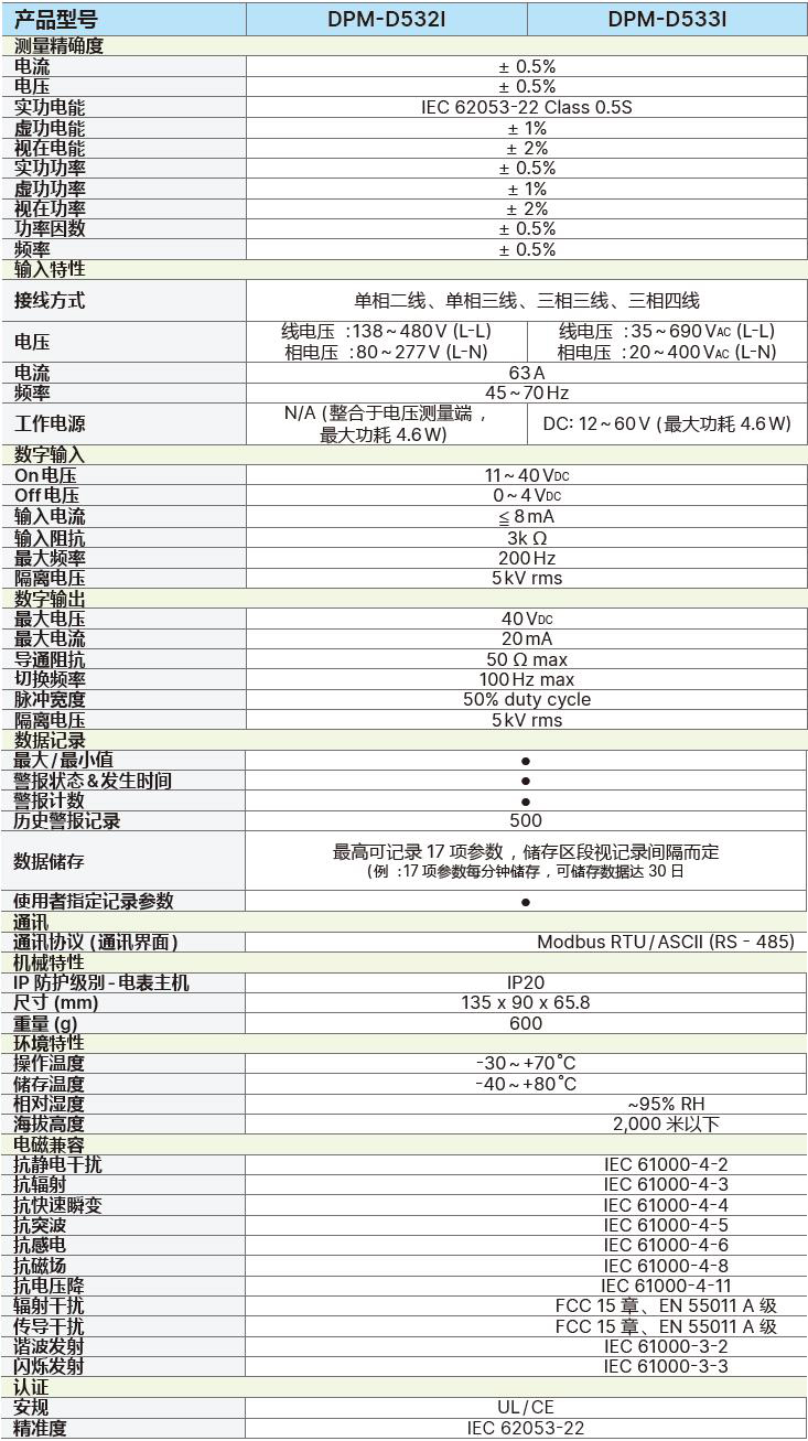 臺(tái)達(dá)導(dǎo)軌型多功能電表 DPM-D532I / D533I ,可直接量測(cè) 63A 以?xún)?nèi)電流,適合用于設(shè)備機(jī)臺(tái),或空間有限、需緊密安裝的場(chǎng)域。
