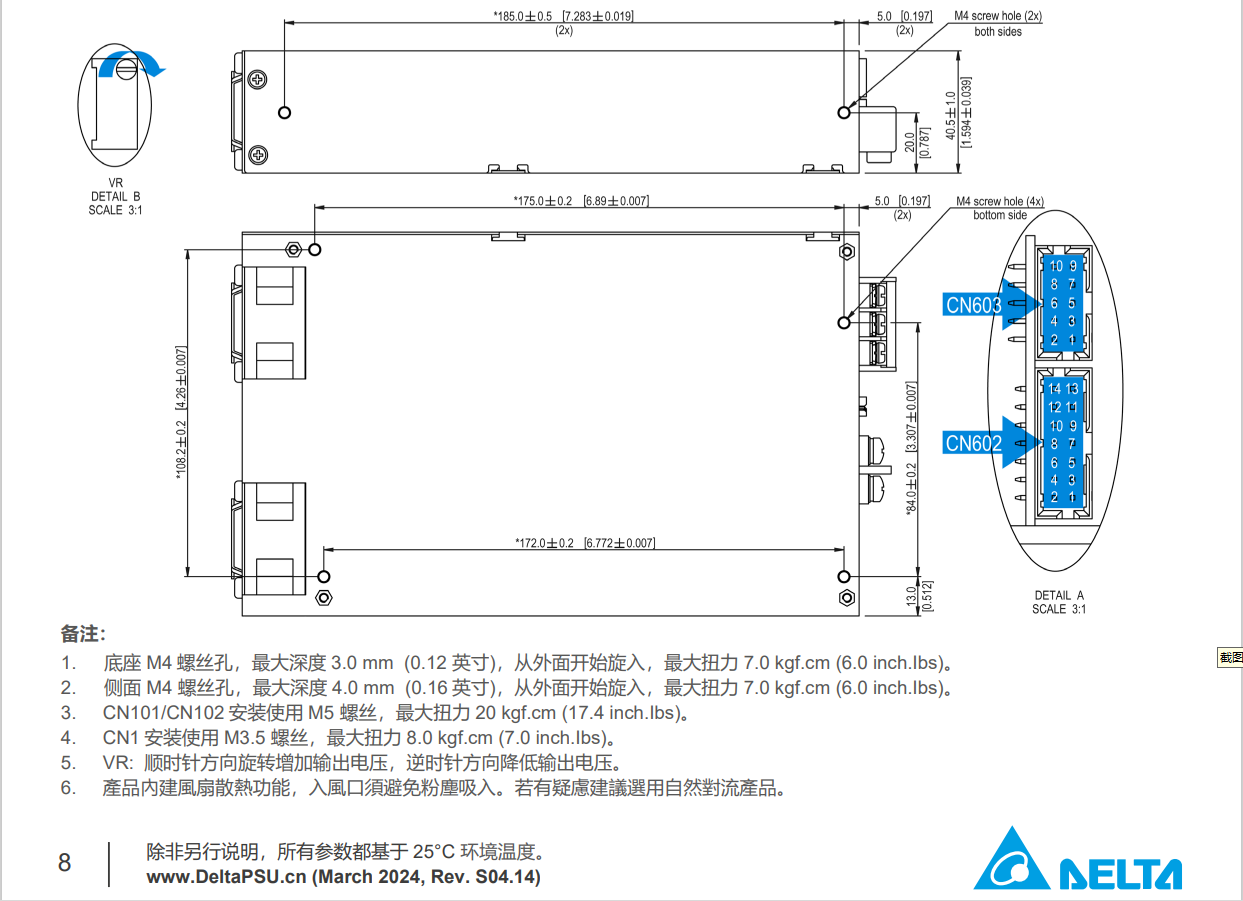 | 滿載效率 | 115VAc(60Hz) | 90.0%typ. | 90.9%typ. | 91.5%typ. |