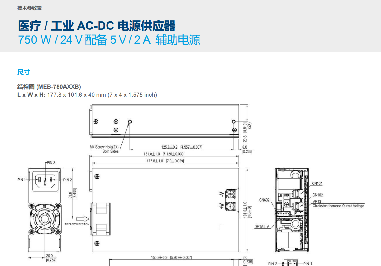 • 4"x7"x1.575" 外形尺寸,功率高達(dá)750 瓦