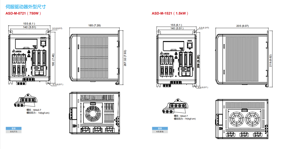 | ASD-M-0721 | 9.3 | 17.8 | 5.1 | 0~±10 Voc | 10KΩ | 2.2μs | 參數(shù)設定方式或模擬輸入 | 風扇冷 卻 |