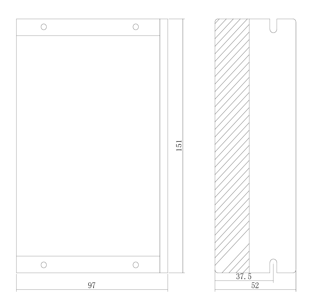 | 安裝說(shuō)明 | 驅(qū)動(dòng)器的外形尺寸為:151×97×52mm,安裝孔距為142mm。安裝時(shí),應(yīng)使其緊貼在金屬機(jī)柜上以利于散熱。 |