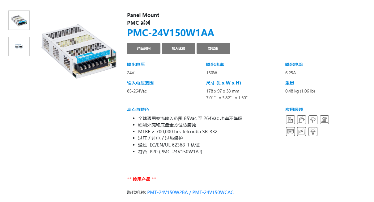| 輸出 | PMC-05V015W1AA | PMC-12V150W1B | PMC-12V600W1BA | |