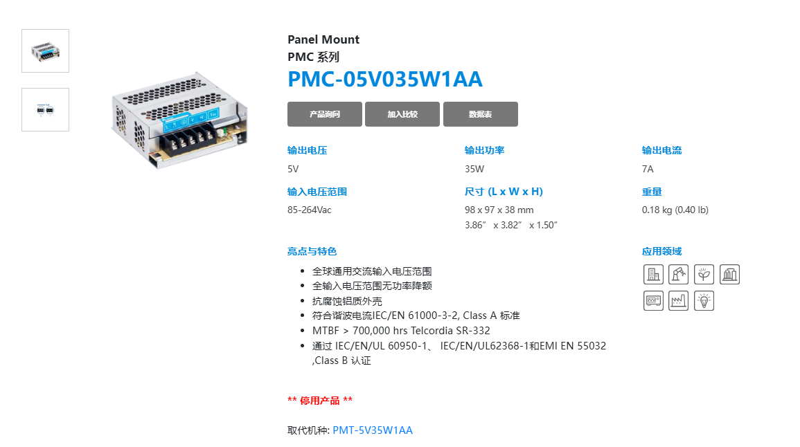 | 輸出 | PMC-05V015W1AA | PMC-12V150W1B | PMC-12V600W1BA | |