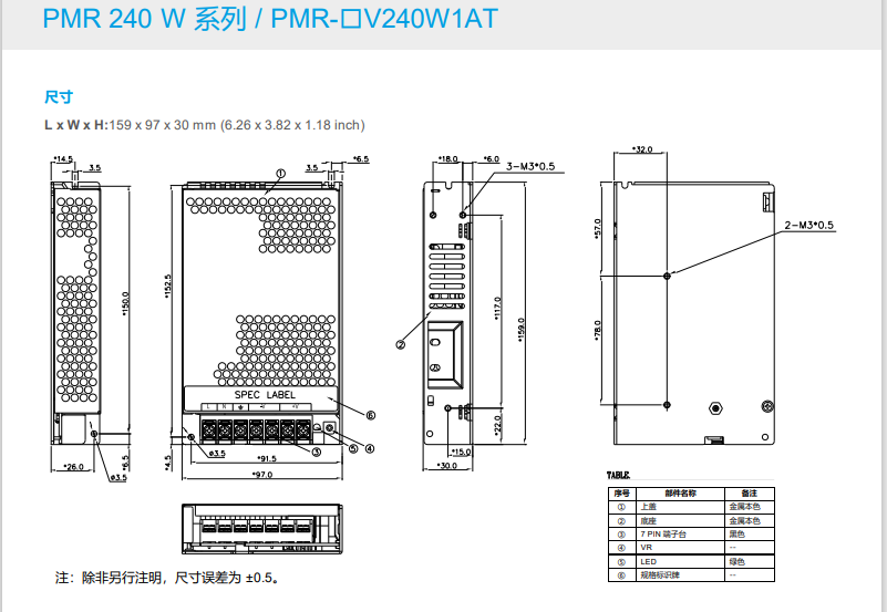 | 輸出 | PMR-12V320W1AT | PMR-24V320W1A | PMR-36V320W1AT | PMR-48V320W1AT | |