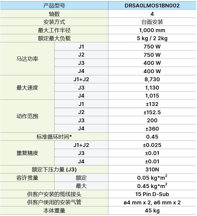 * 負(fù)載 2 kg 時(shí),上下移動(dòng) 25 mm,水平移動(dòng) 300 mm,往返所需的時(shí)間。測(cè)試環(huán)境溫度 25 oC, 環(huán)境相對(duì)濕度 45百分之 ~ 65百分之 RH