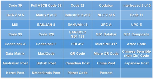 支持條形碼類型